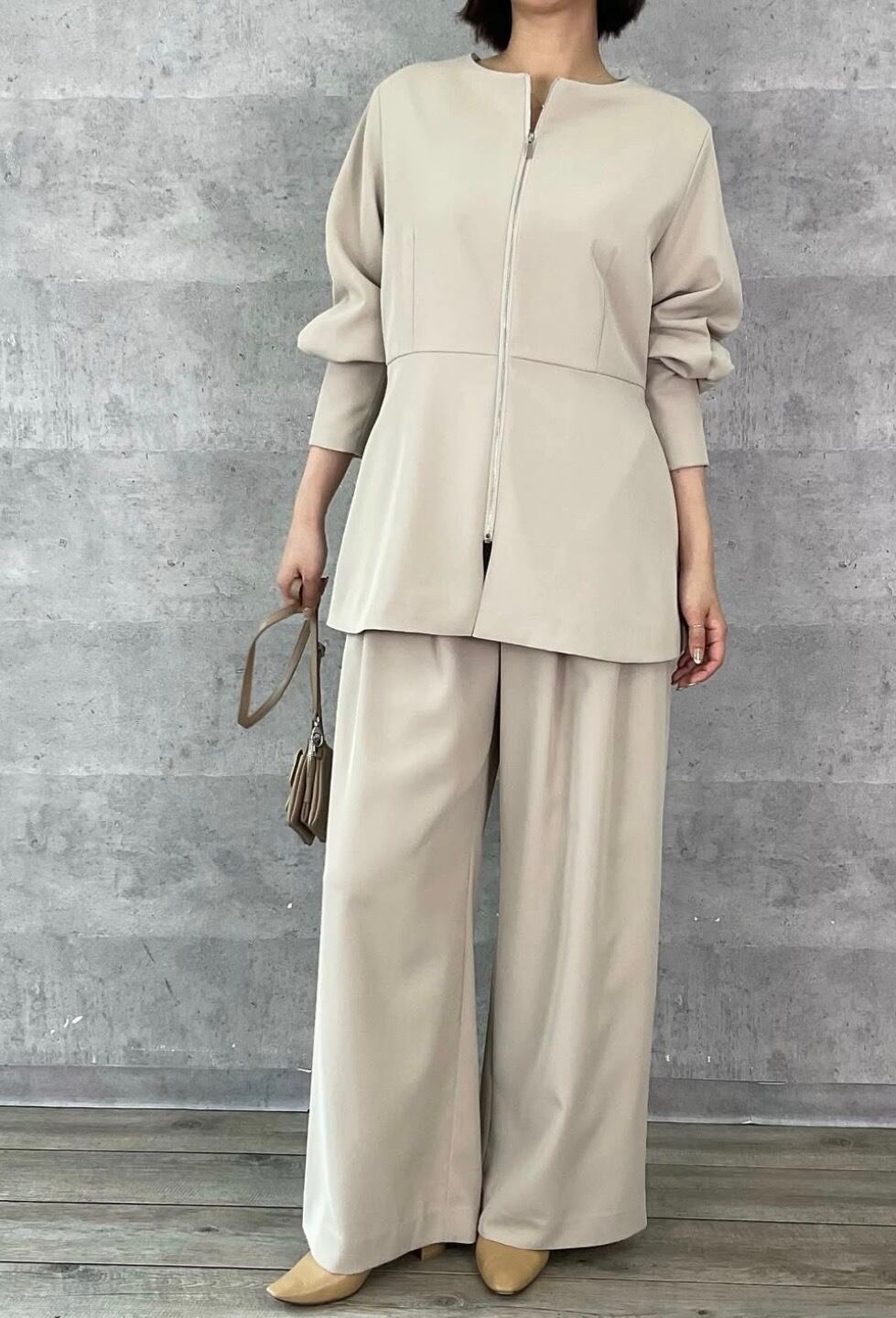 ワイドパンツなのに前身の2タックで細く見えるシルエット